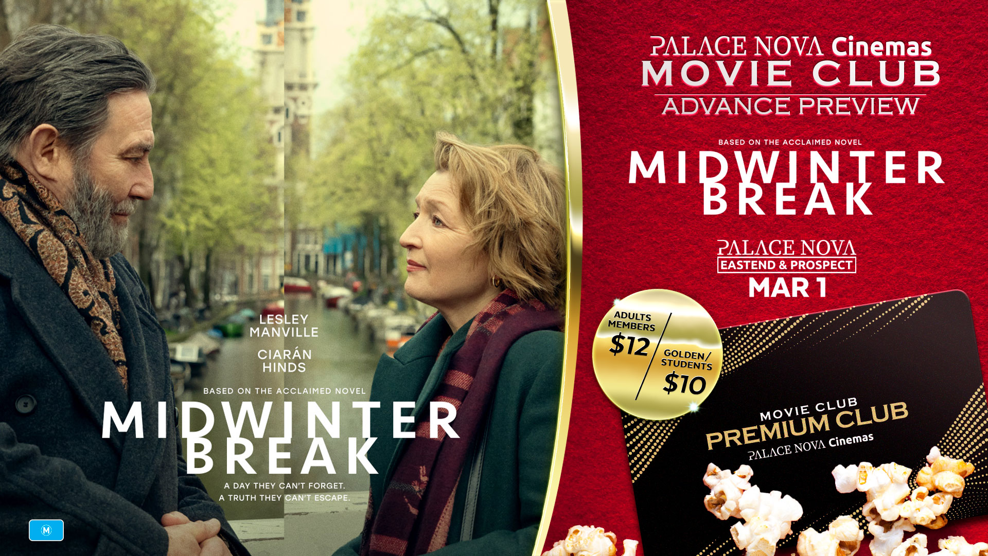 Lights! Camera! Savings! Be a part of the Palace Nova Cinemas Movie Club and get deep discounts on tickets. Join us for a Movie Club Advance Preview of the compelling new film Midwinter Break.