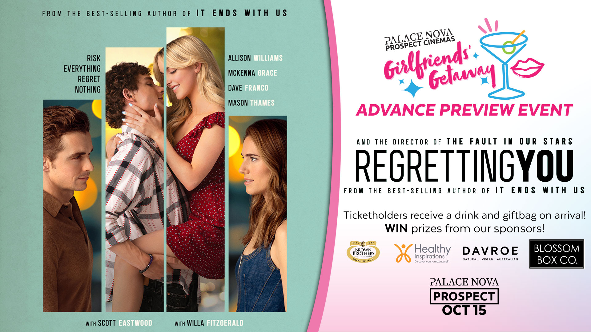 Be one of the first in Adelaide to see the latest film based on the works of author Colleen Hoover - Regretting You, starring Allison Williams, Mckenna Grace, and Dave Franko. Ticketholders receive a drink on arrival, as well as a gift bag full of goodies