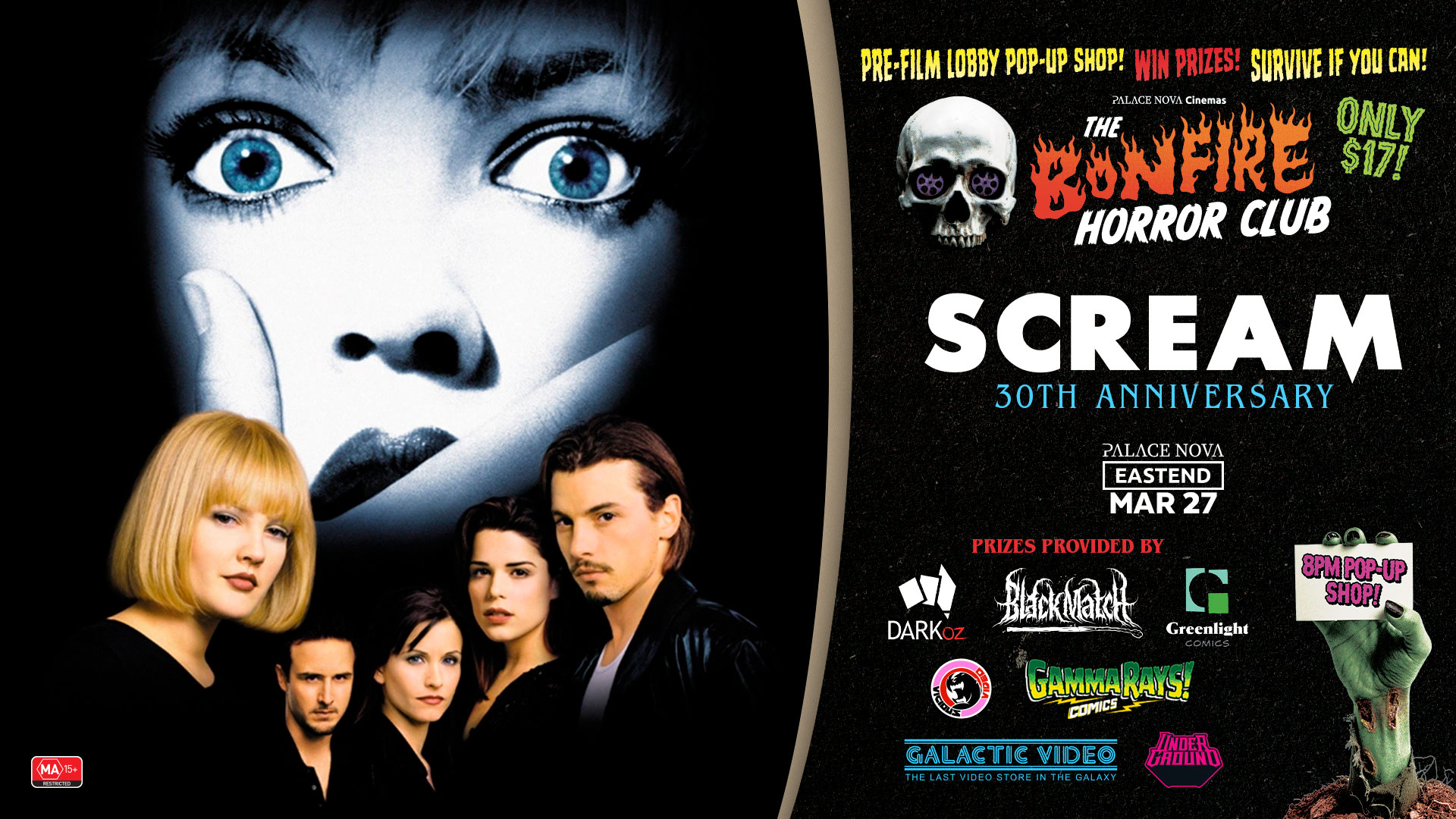 What's your favorite scary movie? Palace Nova's Bonfire Horror Club celebrates the original Scream's 30th anniversary!More info