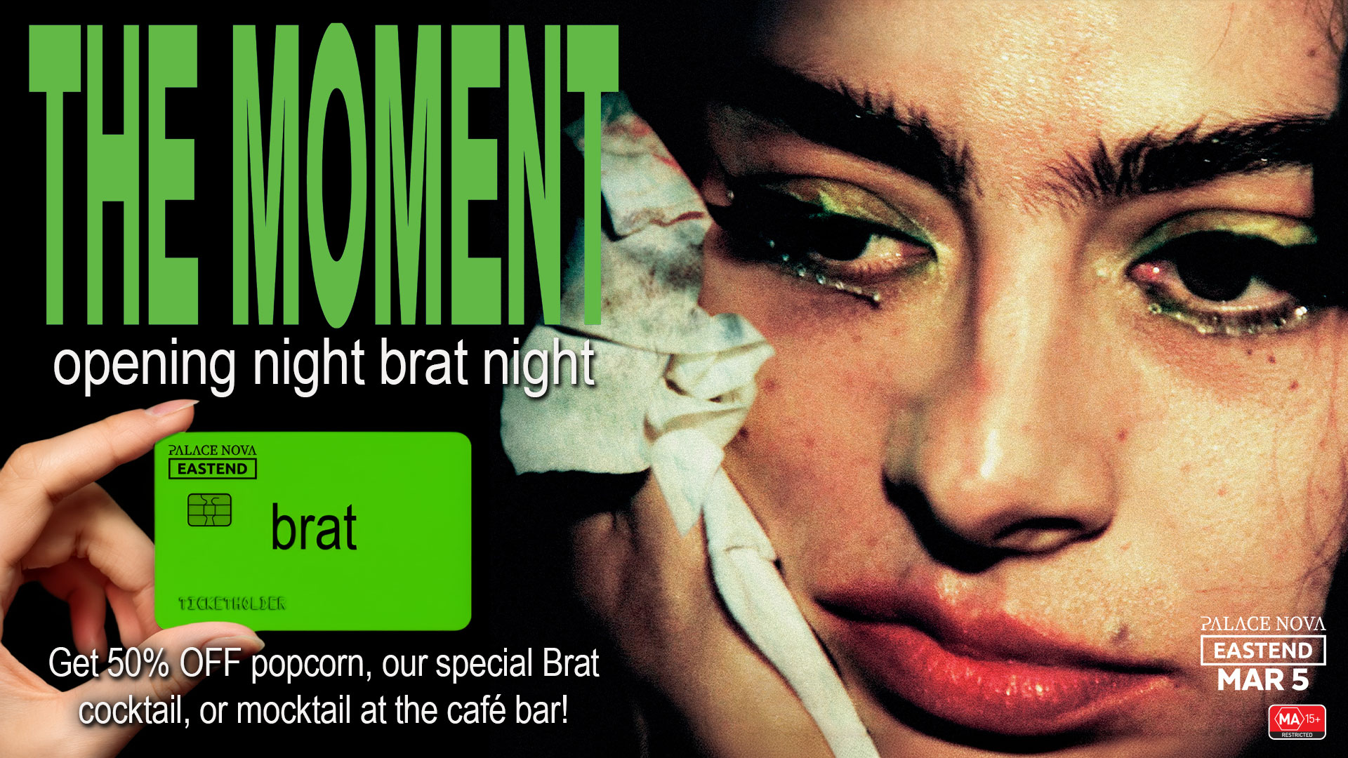 Brat Summer lives on at our special opening night event screening of The Moment, starring Charli XCX. Ticketholders receive a Brat card to get 50% OFF popcorn, our special Brat cocktail, or mocktail at the café bar!More info