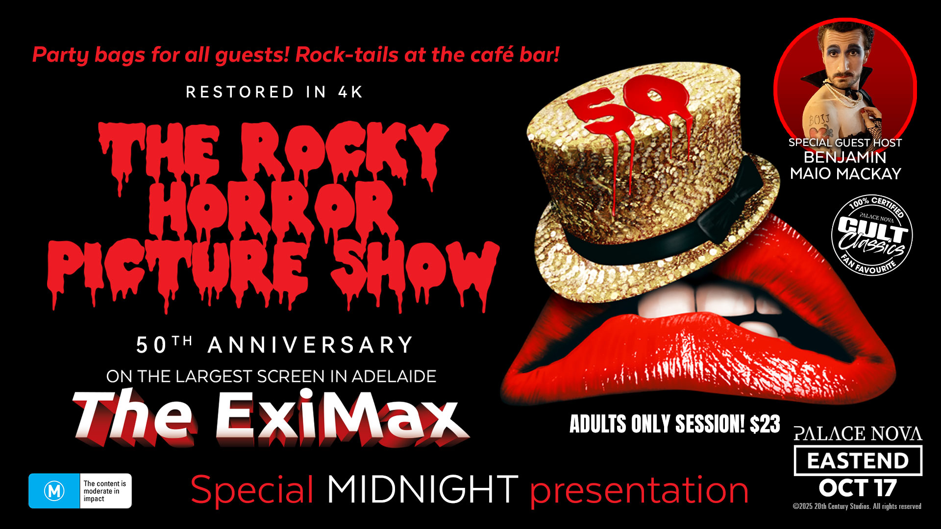 Come on up to the lab and see what’s on the slab. Join us for a special 50th anniversary presentation of the ORIGINAL CULT CLASSIC – The Rocky Horror Picture Show, fully remastered and presented on the largest screen in Adelaide - the ExiMax!